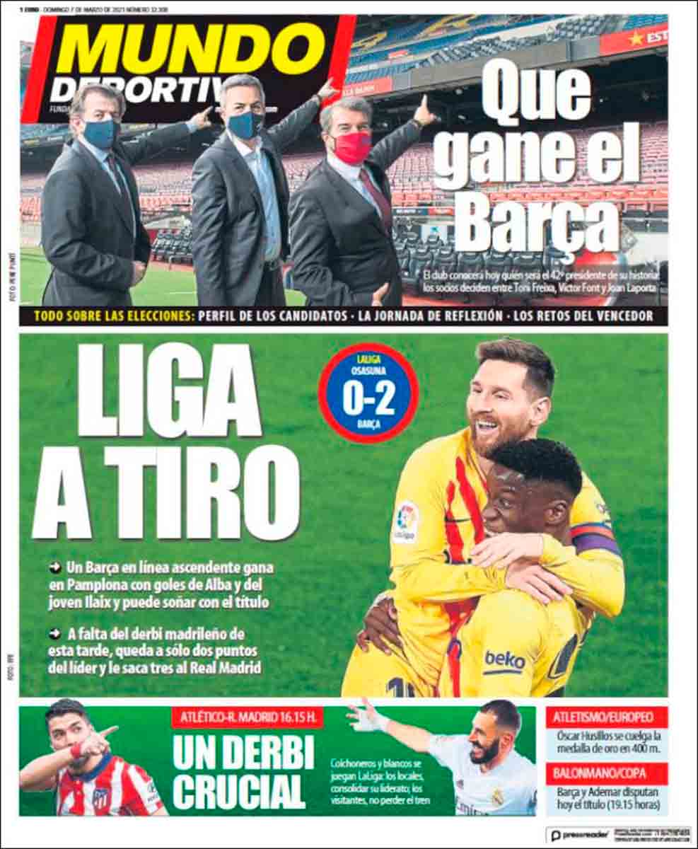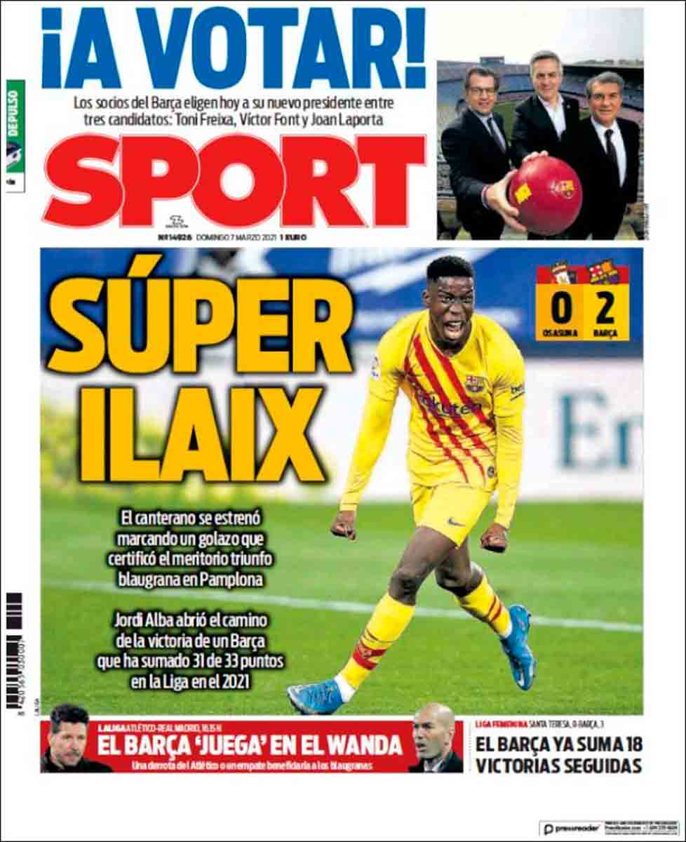 En Barcelona quieren tener similar convicción, y debemos reconocer que su tendencia es positiva, pese a los líos en los que andan metidos desde hace ya tiempo. Ayer ganaron en Pamplona, fundamentalmente porque Messi aún no se ha ido y porque Ter Stegen salva más goles de los que, por ejemplo, le perdonaron parar a Casillas en sus años más virtuosos. Para llenarse de razones, ensalzan a uno de sus canteranos en la portada de Sport, no vaya a ser que alguien les recuerde las millonadas invertidas (?) estos años mientras el relato impuesto seguía hablando de valors y Masía, de tiki-taka y césped.
