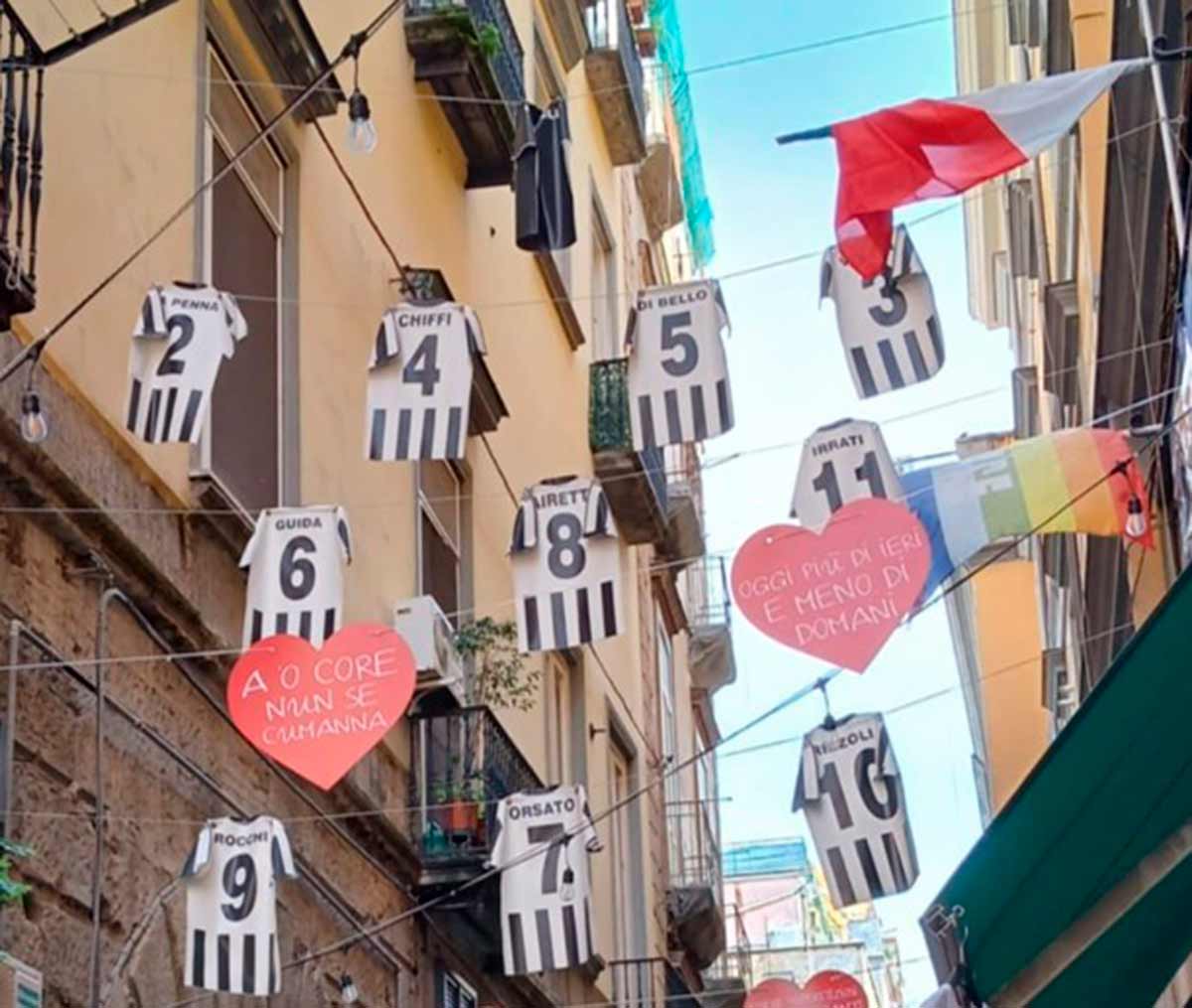 En la vieja Parténope, concretamente en su barrio Spaccanapoli, encontré una deliciosa mofa a los triunfos turineses consistente en colgar once camisetas de la Juve en las que los nombres de los jugadores eran reemplazados por los de árbitros italianos, destacando la delantera formada por Rocchi, Orsato y Rizzoli.