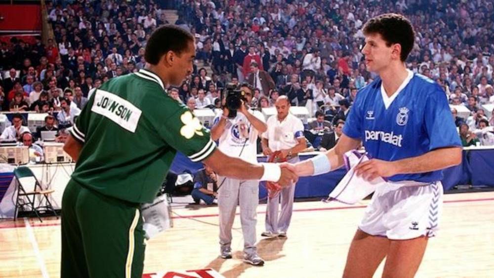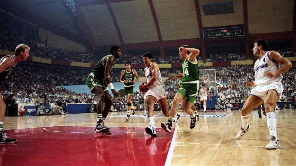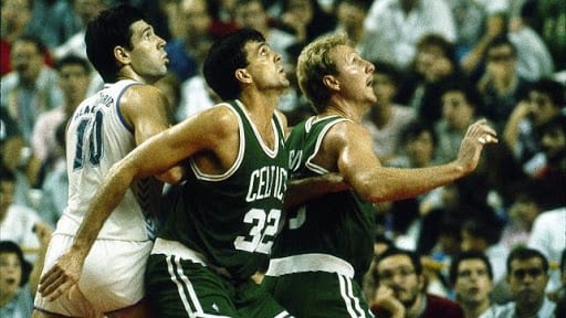 Por fin, a última hora conseguimos eludir los obstáculos del reglamento y tras dos horas y media largas hilamos una racha entre el acierto de Petrovic, la labor de Antonio Martín y el deseo de un servidor, que según decían las crónicas soñaba con la final frente a los Celtics. Con franqueza, no recuerdo si tenía sueños rociados, pero sí que al anotar una bandeja y con el partido encarrilado, cuando daba la vuelta como un poseso para bajar a defender me dieron ganas de subir a chocar con Kevin McHale y Danny Ainge, que nos honraron con su presencia en el partido. Vinieron a espiarme…
