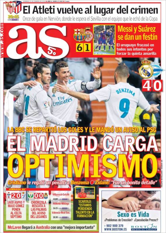 Como saben, de un tiempo a esta parte el diario as ha venido repitiendo un gag ciertamente hilarante que hoy -oh, sorpresa- ha decidido hacer regresar al baúl de sus vergüenzas. Si últimamente la transgresión ortográfica, sin duda ingeniosa, de escribir el acrónimo que nombra de un plumazo a Benzema, Bale y Cristiano como bbC venía siendo el santo y seña del periódico dirigido por alfredo relaño, hoy la falta de respeto queda herida de muerte tras la exhibición de los citados en su partido contra el Alavés.