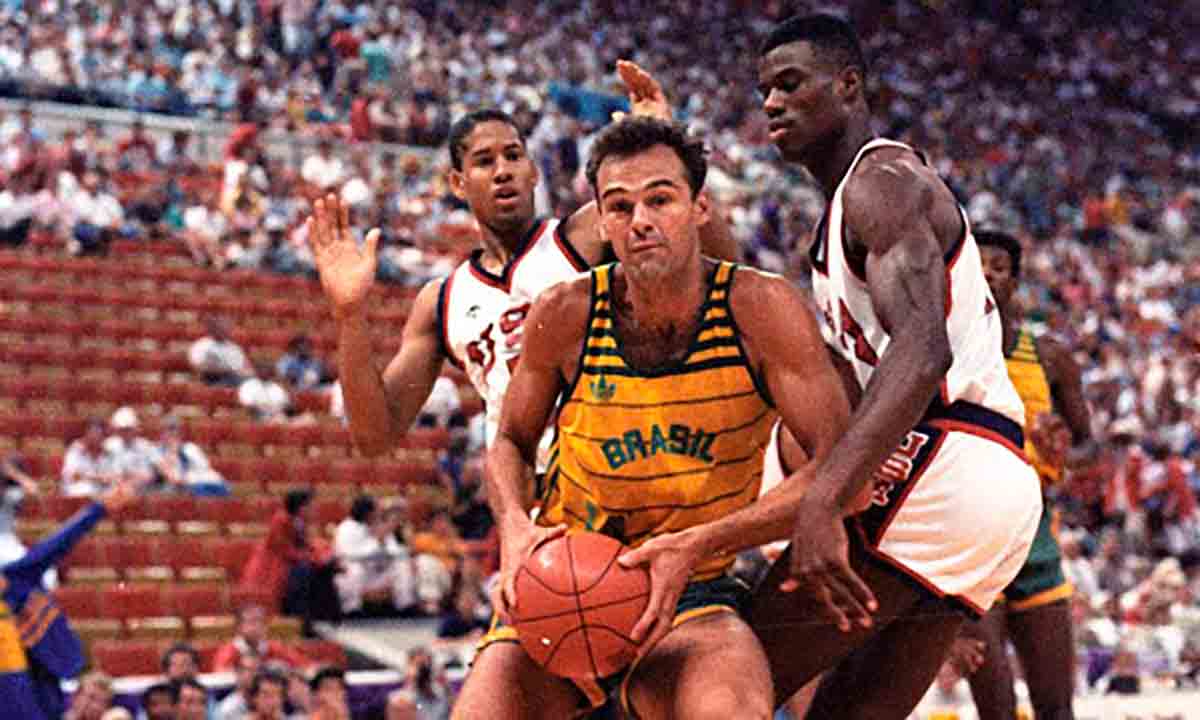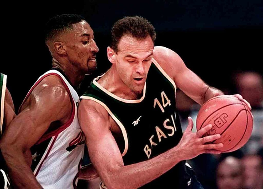 Oscar Daniel Bezerra Schmidt es uno de los mejores jugadores de la historia del baloncesto. Su carrera está llena de éxitos y marcas anotadoras de todo tipo. Por supuesto, es el máximo anotador olímpico, uno de los escasos baloncestistas que ha jugado cinco juegos y el máximo anotador histórico del baloncesto. Durante los años 80 su dominio fue arrasador, con una victoria a sus espaldas que retumbó en todo el orbe baloncestístico: en los Juegos Panamericanos celebrados en Indianápolis, ante un joven equipo de Estados Unidos con David Robinson a la cabeza, nuestro superhéroe brasileño anotó 46 puntos (una lástima para el cronista que no se hubiera quedado en 44), al tiempo que ofrecía una exhibición antológica en la que, por primera vez, un equipo estadounidense perdía como local y recibía más de 100 puntos. A pesar de haber recibido con anterioridad ofertas de la NBA, las rechazó, porque le impedían jugar con su amada selección de Brasil con la que tiene un palmarés impresionante. Entre otras grandes clasificaciones, tres oros en los campeonatos sudamericanos, dos en el Torneo Preolímpico americano, el citado oro en los panamericanos y multitud de cuartos y quintos puestos en Mundiales y Juegos Olímpicos. También es campeón mundial de clubs y subcampeón, pues le ganamos una final en 1981. Si quieren estar seguros de que su fichaje por el Real Madrid hubiera sido un éxito extraordinario, no dejen ver su discurso de ingreso en el Hall of Fame estadounidense, una joya emotiva y desternillante, descriptiva de un luchador, de una persona que, por encima de todo, honra su deporte, su familia, sus compañeros y su país. Oscar, Mano Santa, una leyenda que estuvo a punto de ser blanca.