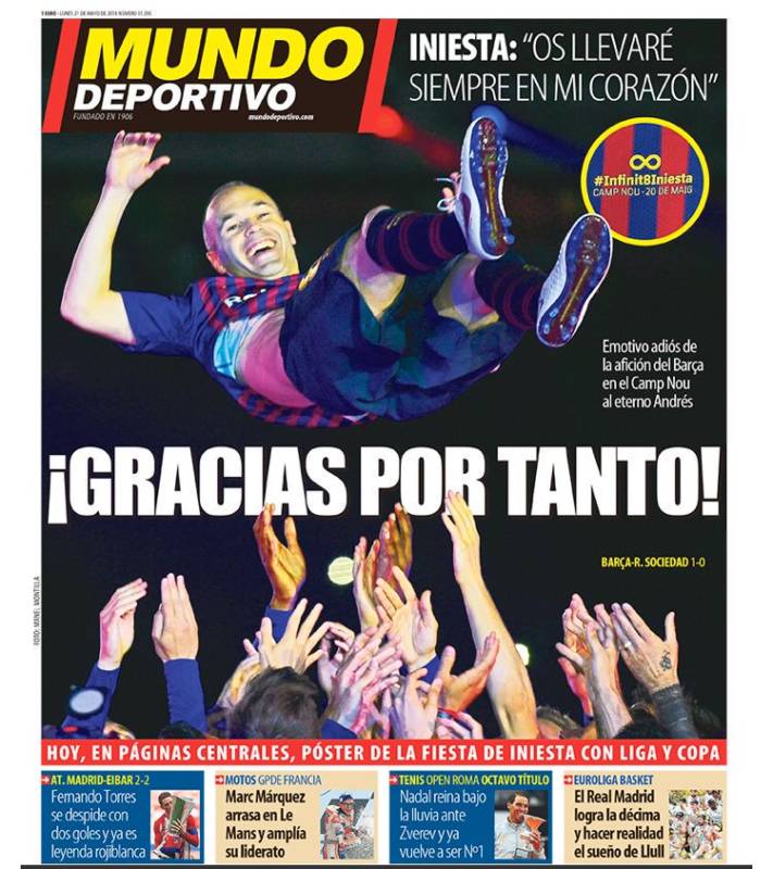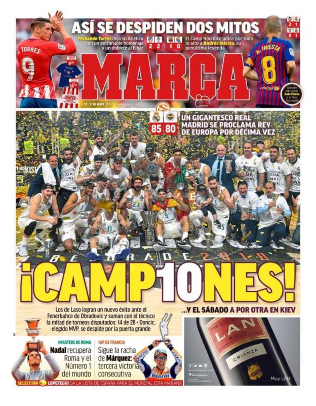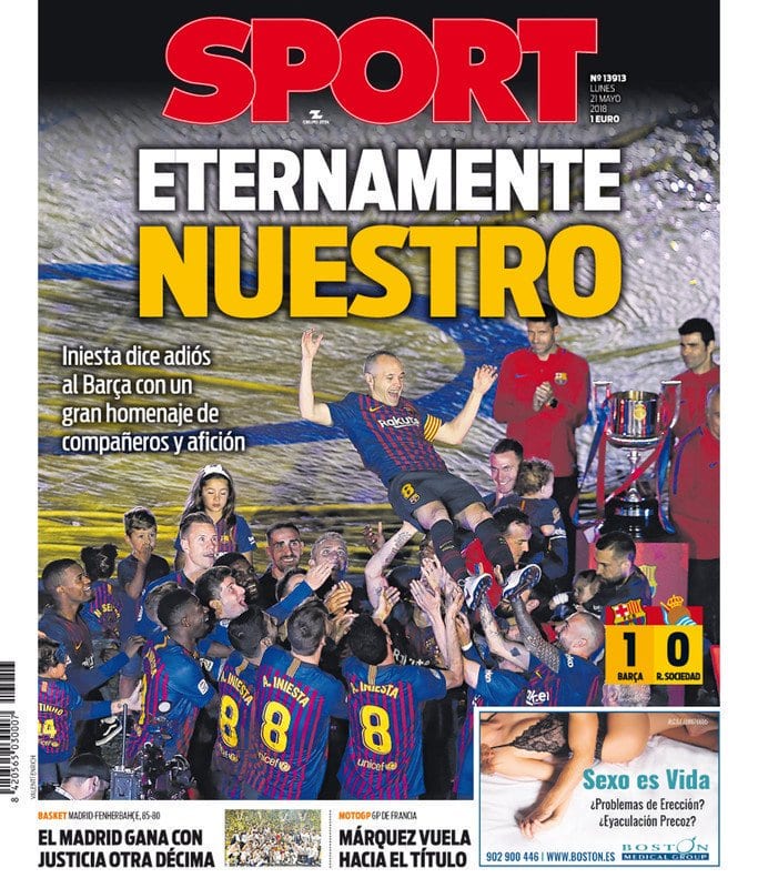 En las portadas de hoy, Madrid celebra la Décima y Barcelona despide a Andrés Iniesta. Sin embargo, hemos encontrado una frase maravillosa en la primera página de 'Sport', frase que ha inspirado el título de este 'Portanálisis'.