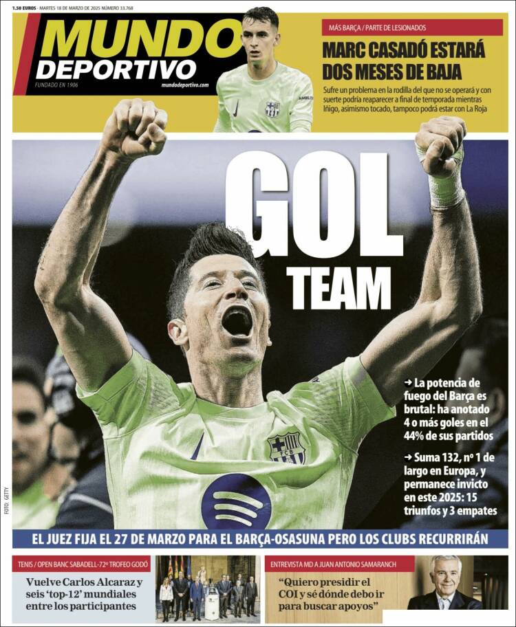 La prensa cataculé, mientras tanto, aprovecha el parón para hablar de sus cositas. Se ha lesionado Marc Casadó y le deseamos una pronta recuperación. Tanto Sport como Mundo Deportivo recogen en sus bajos la negativa del club cliente de Negreira a jugar el día 27 su partido aplazado contra Osasuna. Todos conocemos el luctuoso motivo por el que hubo de aplazarse ese encuentro y nos solidarizamos con ello. Francamente, sin embargo, no pensamos que estén en disposición de negarse en redondo a las fechas que se les propongan, considerando que se les hizo un favor con el propio aplazamiento. Favor por una causa que suscita toda la comprensión del mundo, pero favor al fin y al cabo.