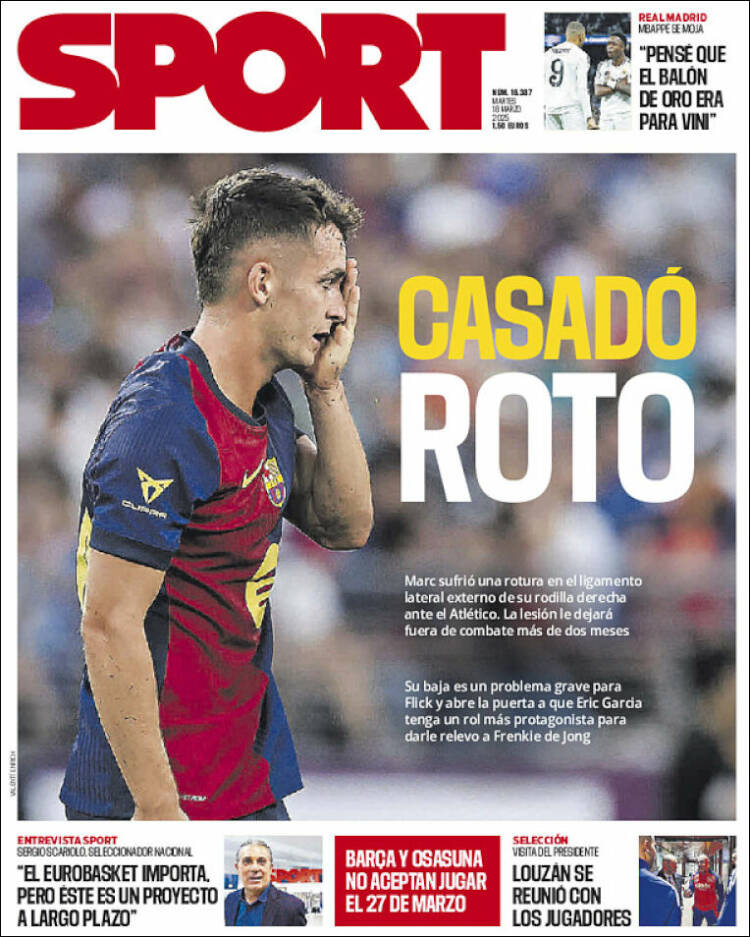Y poco más. Nos despedimos por hoy, no sin antes dejaros con la portada de Marca, que habla de pelota pero no de la que solemos tratar aquí, y aborda un asunto tan político que ríete tú de las razones que inspiraron la inscripción de Dani Olmo.