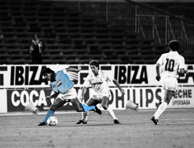 Era la ida de la primera ronda y el mejor jugador del planeta llegaba acompañado de los Ferrara, De Napoli, Baiano o Giordano. Pero Chendo en un marcaje para la historia secó al “Pelusa” y tuvo la osadía de tirarle un caño sublime. El arquero italiano Garella fue el mejor de su equipo pero no pudo detener el penalti lanzado por Míchel en el minuto 18. En la segunda parte Tendillo firmó el 2-0 y el Real Madrid salió con la eliminatoria encarrilada. Los jugadores allí presentes sierre dicen que “aquel día se escuchaban hasta los suspiros”, únicamente superados por los gritos de Camacho desde el banquillo animando a sus compañeros.