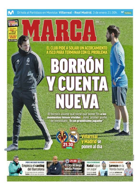 Por lo demás, hoy vuelve el Real Madrid y en 'Marca' siguen hablando de Isco. Llevan un mes con el malagueño a cuestas, pero luego serán Solari y los twitteros los que no quieren hablar de fútbol. Está todo inventado, amigos.