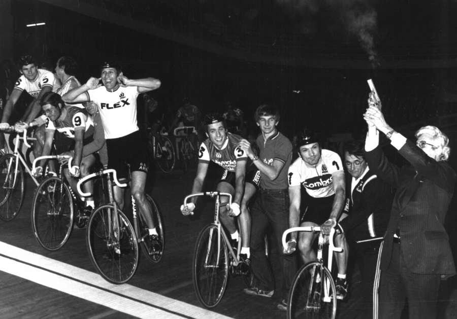 Una de mis actividades favoritas era asistir a los 6 Días de Madrid de Ciclismo en Pista, a los que acudían verdaderos especialistas (René Pijnen, Donald Allan o Gert Frank) junto a ciclistas de ruta como Gerrie Knetemann o Jan Raas. Recuerdo haber visto al mismísimo “Caníbal” Eddy Merckx, al escalador (y ganador del Tour) Joop Zoetemelk o al mítico sprinter Patrick Sercu, que se manejaban bastante bien en pista. No en vano Merckx batió en su momento el récord de la hora en pista en el velódromo de México DF. Los 6 Días de Madrid constituían una auténtica fiesta del ciclismo, y entre prueba y prueba (persecución, velocidad, eliminación, puntuación individual o por parejas), había actuaciones musicales que amenizaban al público, recuerdo bien una del ya desaparecido y entrañable 'El Fary'. Y también algunas exhibiciones de la espectacular especialidad de persecución tras moto, con Bartolomé Caldentey, alumno aventajado del gran Guillermo Timoner, como ciclista estelar.