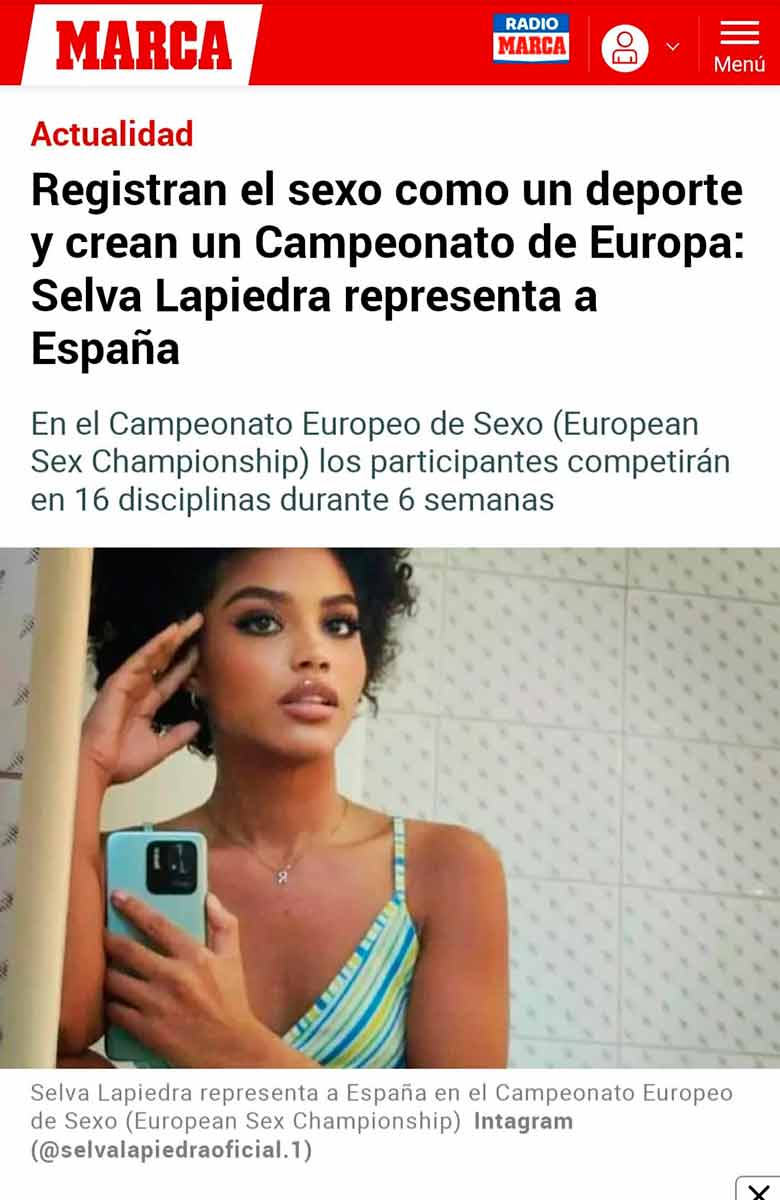 Sí, amigos. Al parecer, la Federación Sueca del Sexo incluso ha organizado el primer Campeonato Europeo de Sexo, que si disputará en Gotemburgo el 8 de junio. Selva Lapiedra representará a España. No sabemos por qué en nuestros país casi todas las actrices de cine para adultos se apellidarán Lapiedra. Tal vez se trate de una familia de muy saludable vida horizontal, o tal vez todas las Lapiedra que conocemos solo tengan en común su propensión a pasar por la ídem. María Lapiedra, sin ir más lejos, fue novia de Jan Laporta, sin que por el momento haya emitido en público ninguna queja relativa a palancas.