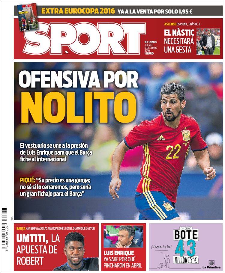 Si hemos venido aquí a hablar de Luka Modric y hemos bajado un momento del altar para referirnos a Pogba, que no se nos enfaden Nolito y Umtiti (?), pero ya comprenderán que no hagamos esperar mucho más al croata mientras consultamos las portadas catalanas. Parece que Nolito se acerca al Barcelona, y nosotros solo esperamos que esta vez haya dinero de por medio. Ya se sabe que el vil metal no da la felicidad, pero todo indica que se ha convertido en sólida convención eso de pagar por las cosas que uno quiere, incluso (lo nunca visto) en el mundo del fútbol, donde el club de origen de un jugador se empeña en percibir alguna cantidad económica a cambio de que otro equipo se lleve a uno de sus futbolistas. El capitalismo es lo que tiene, por no hablar del Celta de Vigo, que ya podría conformarse con contribuir a que su delantero ingrese en el parnaso culé.
