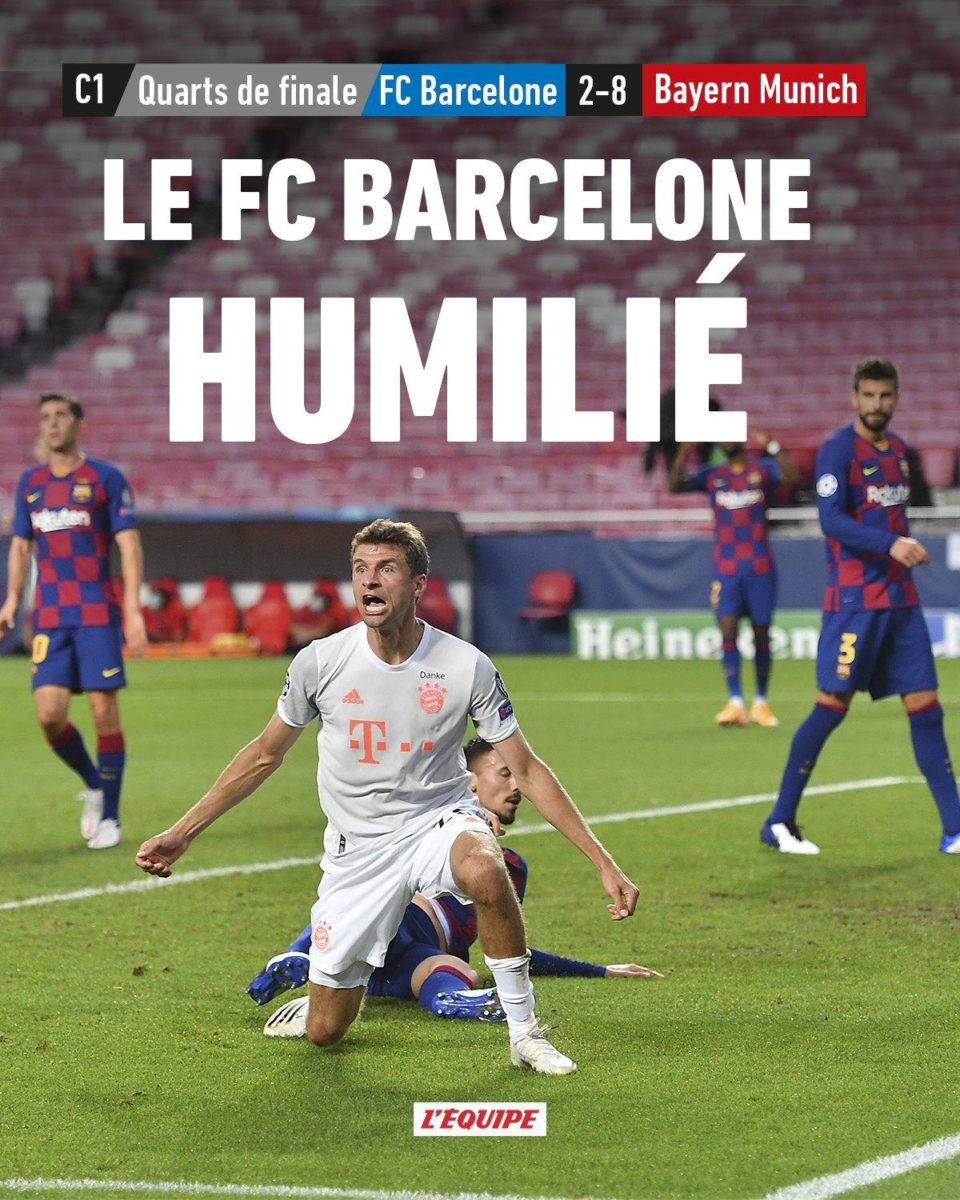 Tampoco será para tanto. A pesar de que la humillación la vea también, con mayor escarnio, o con el debido, el diario L’Equipe: LE FC BARCELONE HUMILIÉ, que parece el título de una novela de Victor Hugo, como Los Miserables. Pero ya veréis cómo no. No os asustéis mucho, amigos de As, que a vuestro Barsa (que sí, que sabemos que es vuestro Barsa) ya le encontraréis forma de compensar semejante dureza para la galería. Esa HUMILLACIÓN HISTÓRICA con Cuchitini en primer plano no deja de ser un homenaje encubierto. Una humillación histórica sería verle sentado en el túnel sin respuesta, sin liderazgo, sin valor y sin clase junto a un Ter Stegen que sí mantiene su dignidad.