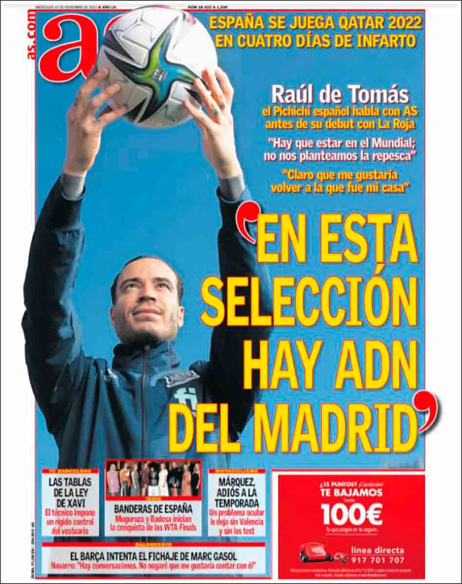 As, por su parte, trae al estupendo delantero Raúl de Tomás, también convocado por Luis Enrique, en entrevista exclusiva. Afirma el hoy espanyolista que esta selección tiene ADN del Madrid, y lo cierto es que haciendo un somero repaso encontramos en la lista del asturiano no menos de siete nombres que han pasado por el equipo blanco o sus divisiones inferiores: el propio Carvajal, el propio De Tomás, Diego Llorente, Brahim, Sarabia, Morata y Rodrigo Moreno. No deja de ser un reconocimiento a la buena labor de la cantera vikinga, pero también constituye un dato inquietante para el equipo nacional. Ya sabemos que el ADN madridista impulsa al denuedo y forja una gran resistencia a la derrota, pero ¿no se trata también de un ácido desoxirribonucleico que tiende a tomarse a chirigota lo importante, es decir, lo del espacio-tiempo?