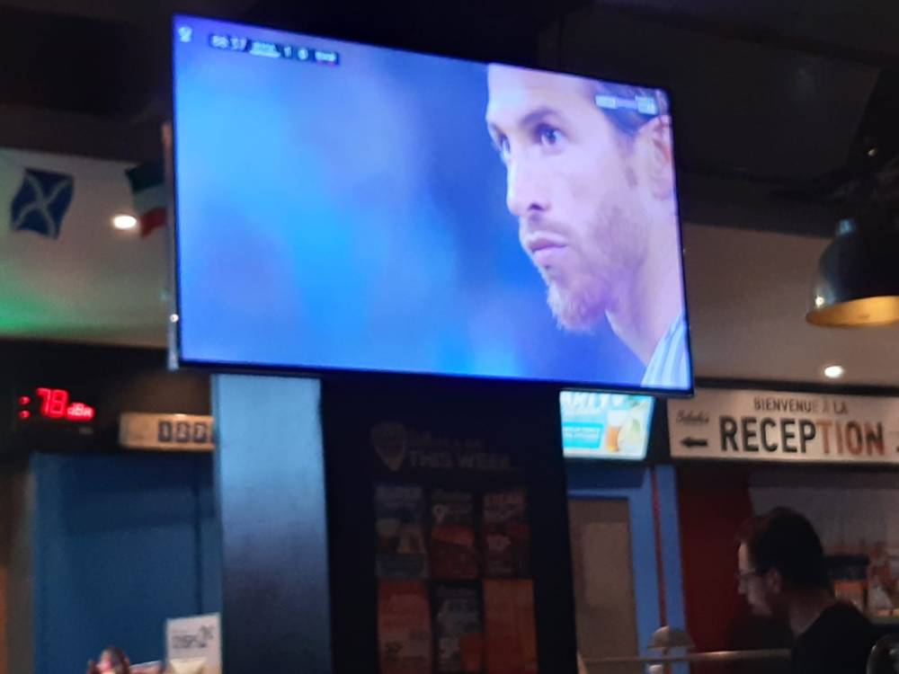 El bar parisino nos pareció algo culé en la primera parte, sobre todo con el “¡Huuuuy!” que se escuchó tras la ocasión marrada por Griezmann, pero salimos de dudas con el gol de Vinícius: eran mayoritariamente madridistas. No podía ser de otro modo en París y el gol se celebró con grandes gritos de júbilo.