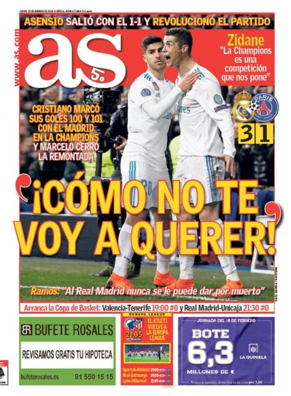 De la prensa como Kevin Costner de Jesús prefiero la de Barcelona porque van de frente y sin pretender engañar a los madridistas, son lo que son y no van de otra cosa, me la tomo como un panfleto satírico, pero con la que no puedo es con la de Madrid que va de seria e imparcial y es asquerosa y rabiosamente antimadridista, y el as además casposa.
