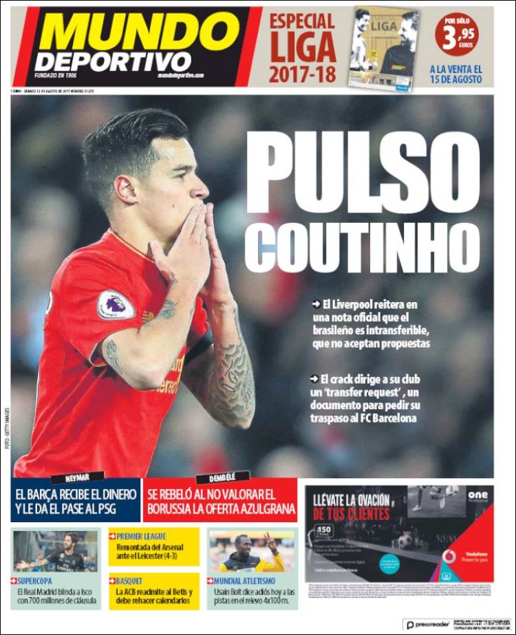 Desvelado ya todo lo que el verano futbolístico contenía, podemos ya por fin pasar a mostrarles las portadas del día, donde lo aquí dicho queda todo lo claro que permiten las imágenes y los titulares, sin duda más comunicativos que este portanálisis. A saber.