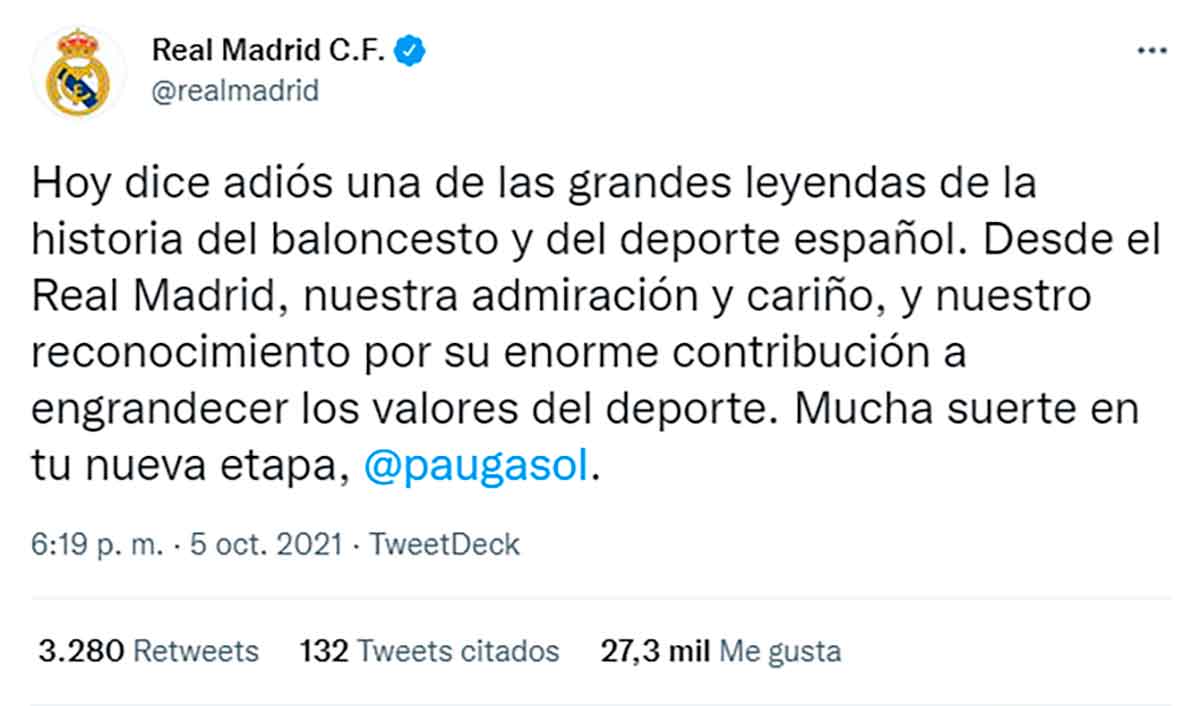 El propio Real Madrid de despidió ayer del grandioso Pau en un comunicado emotivo.