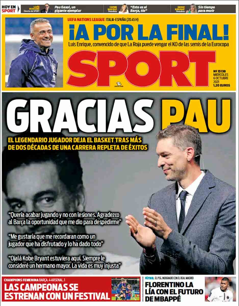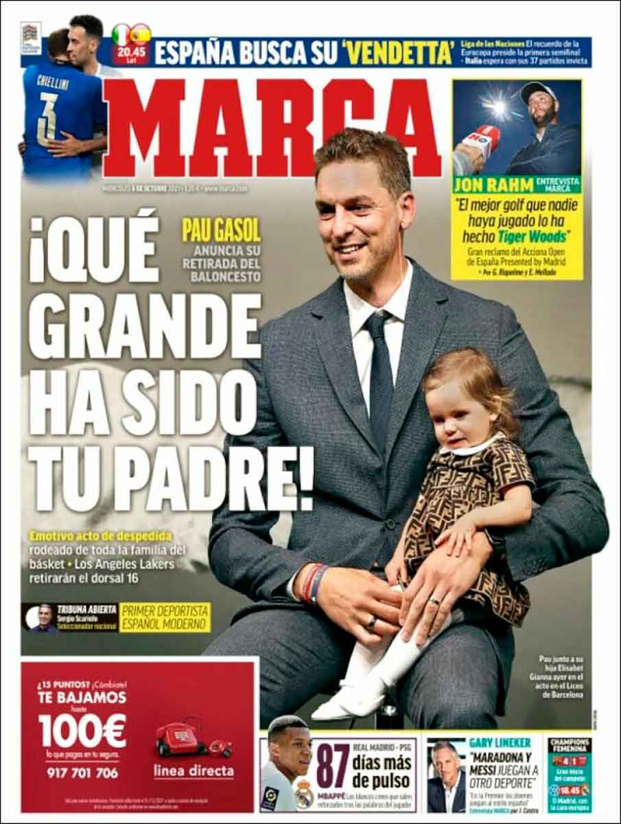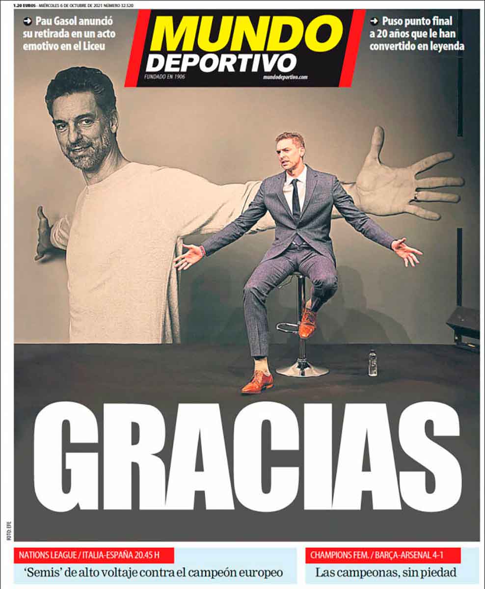 Buenos días. Hoy, en este portanálisis, las palabras están un poco de más. Se retira Pau Gasol, uno de los deportistas españoles más grandes de todos los tiempos. Si quitas de la frase el gentilicio, sigue siendo cierta. Uno de los más grandes deportistas de todos los tiempos, punto.