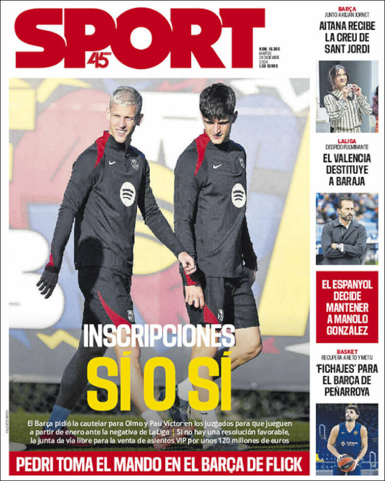 No, amigos, no va a hacer falta que el Juzgado diga nada sobre la inscripción de los jugadores que aparecen en la portada de Sport, a quienes deseamos una muy Feliz Navidad.