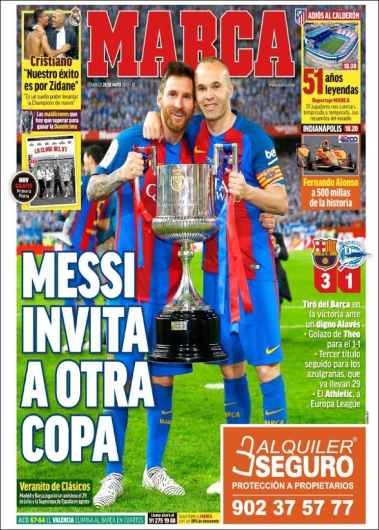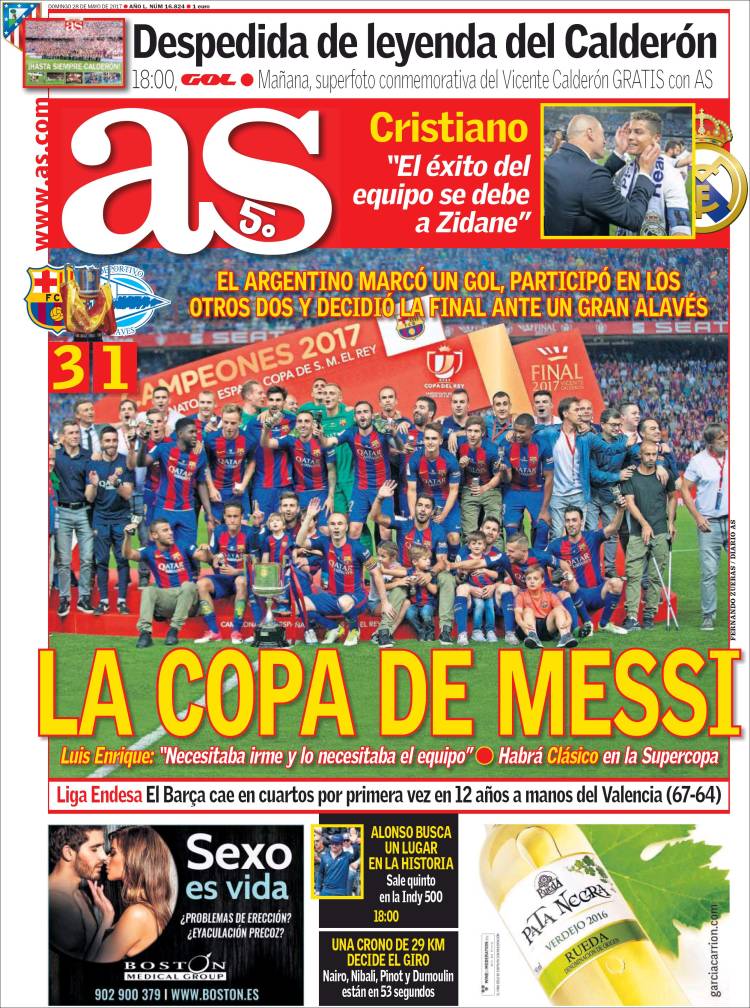 El marcador, ese impostor, no refleja lo realmente sucedido en la Final de la Copa del Rey disputada ayer entre el FC Barcelona y el Alavés. El colegiado Clos Gómez emborronó, en su último partido, una hoja de servicios que hasta la fecha había sido impoluta para con el Régimen dejando sin señalar un penalti de libro cometido por el balón sobre Jordi Alba. Nos referimos, claro está, a la jugada acaecida en el segundo tiempo, cuando tras adentrarse en el área para recibir un pase en profundidad de Messi el noble y sagaz lateral izquierdo culé fue arrollado por el balón en cristalina pena máxima. No solo Clos no marcó los once metros, echando así un borrón de última hora en su imborrable historial, sino que ni siquiera la prensa barcelonesa, teóricamente afín al club del rinconcito, se ha hecho eco del incidente.