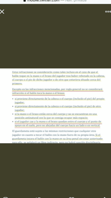 Ahora todas las manos en el área son penalti con algunas excepciones, te informan, resultando que esta jugada cae (según ellos) justamente del lado de la excepción. Te preguntas cómo puede ser que la excepción sea precisamente el penalti más claro de la historia del género humano sobre la faz de la tierra. Te pasan la norma.