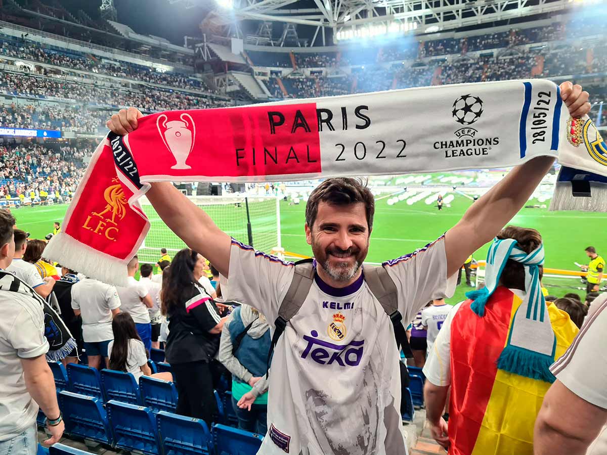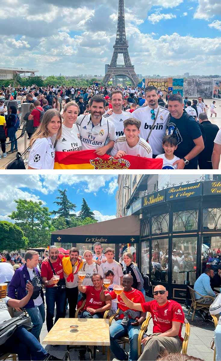- París, para presenciar la conquista de la Decimocuarta Champions League. Hicimos el viaje en coche, más de 12 horas para ir y volver, para vivir ese sueño en directo. Fue un largo viaje que mereció la pena. Disfrutamos de un día espectacular en la fan zone del club y aunque la previa en los alrededores del estadio no fue la deseada, disfrutamos como nunca de un día inolvidable