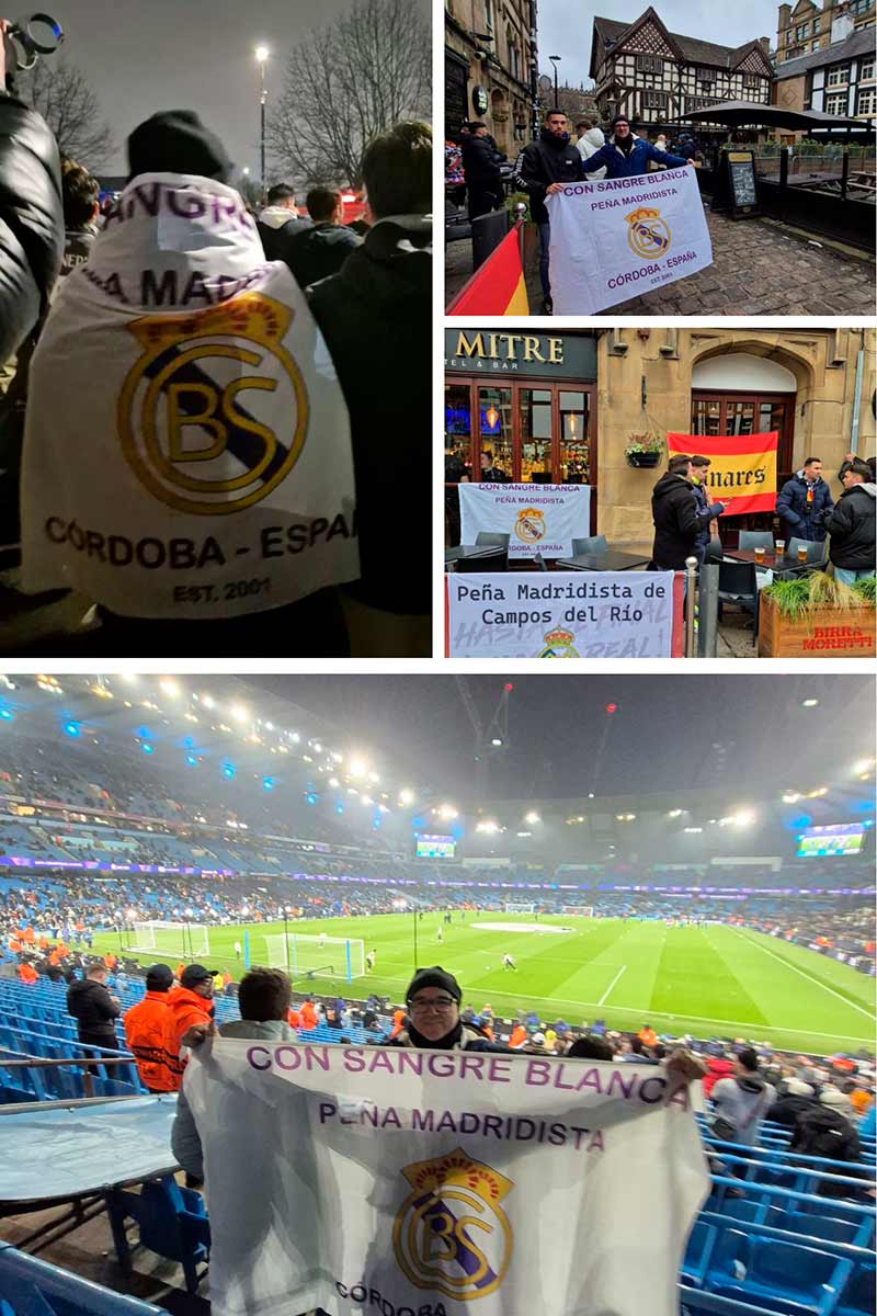 - Manchester, para ver a nuestro equipo ganar al City de Guardiola. Uno de nuestros más viajeros, Juan Mesa, pudo lucir nuestra bandera por las calles de Manchester y en el mismo Etihad Stadium