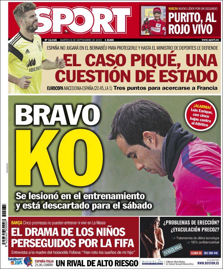 Pero sí, la portada del día de hoy del sport es otra, donde se confirman las peores previsiones para Bravo (7 partidos de baja), las cuales lamento, la verdad.