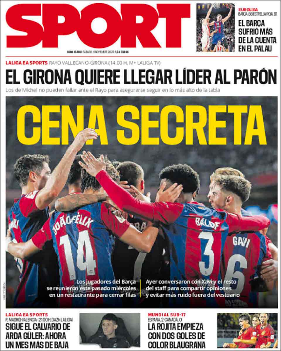 Y acabamos con la prensa cataculé, que sigue a sus cositas. En la primera plana de Sport, se dedica un recuadro de tamaño considerable a la nueva lesión de Arda Güler, que aún no ha podido debutar con los de Ancelotti. Le dedica a esto más espacio Sport que As o Marca. Los términos melodramáticos que utilizan son de mal gusto: “Sigue el calvario de Arda Güler: ahora un mes de baja”.