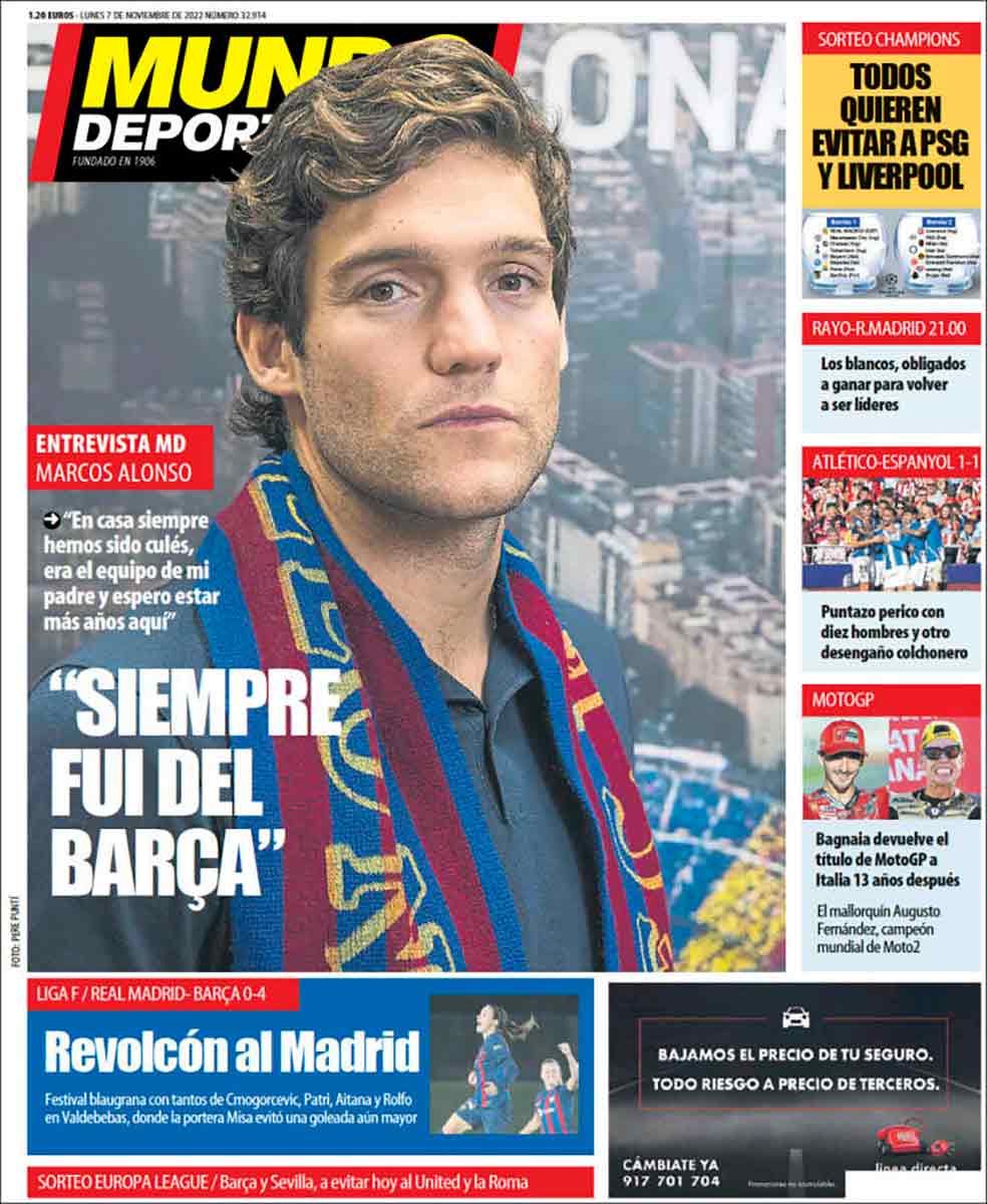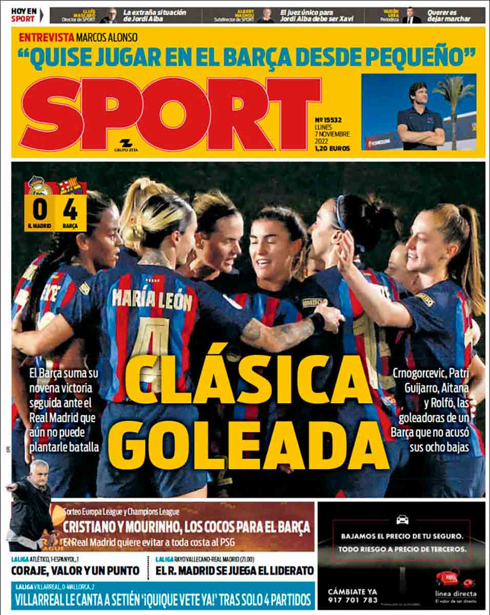 La prensa cataculé está a sus cosas. Entrevista con Marcos Alonso, que es superrecontraculé, pero vamos, que si quieres te lo miro, y la goleada del Madrid femenino al Barça femenino, o al contrario, lo que corresponda. De ese descalabro os habla con franqueza hoy, en La Galerna, Fernando Alcalá-Zamora. Leedle y haceos vuestra propia composición de lugar.