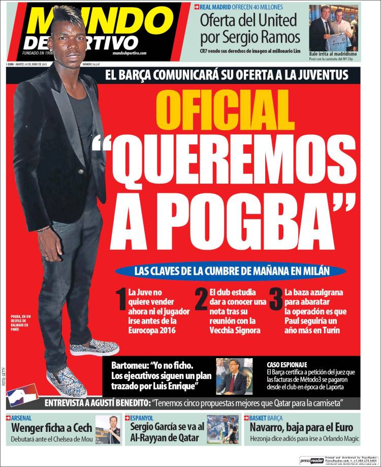 Ay, no podía durar la tregua que amablemente nos brindaba la prensa madrileña. En Cataluña no quieren que durmamos bien, y vuelve Pogba a ocupar sus portadas; el mismo Pogba de ayer, de anteayer, de mañana, de vayan ustedes a saber hasta cuándo, por Dios Santo Iker. Pogba como el cuervo de Poe. Pogba golpeando con sus nudillos nuestra ventana cada noche para no dejarnos descansar con su Nevermore. Pogba tomando nuestra casa. Pogba al acecho en el cobertizo. Pogba como el Robert Mitchum de La noche del cazador. Pobga como De Niro en El cabo del miedo. Pogba, por siempre jamás Pogba. No podemos más, doctor. Ayuda.