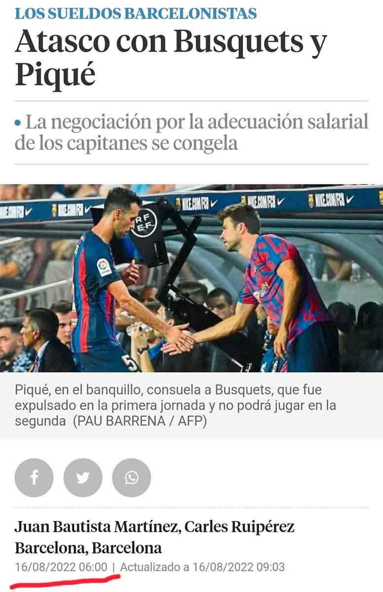 El otro beneficiado por la información fue el Barcelona. Si dura una semana más el mercado , quién sabe si no hubiese pescado la última pieza de gran calado que ansiaba. El Barcelona ha puesto en verde un equipo nuevo. Exceptuando al portero, Pedri,de momento Busquets,veremos Gavi , no ha dejado títere con cabeza . Zapatos nuevos . Si le salen las cuentas , chapeau.Esto lo dirá el tiempo.