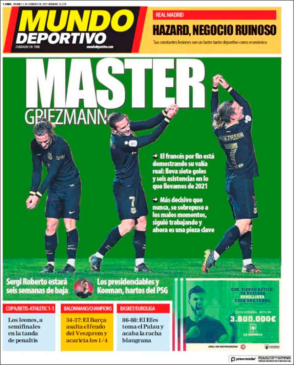 Madre mía, parecen portadas del mes de julio. Va a ser verdad que la liga está decidida y que la copa importa poco...