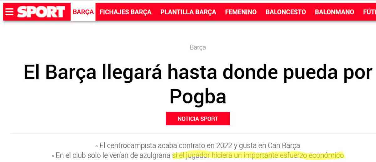 Lo de Pogba, puntualizan, exige que el jugador haga un "importante esfuerzo económico". Quizá quieran que acepte una bajada de su ficha antes de fichar.