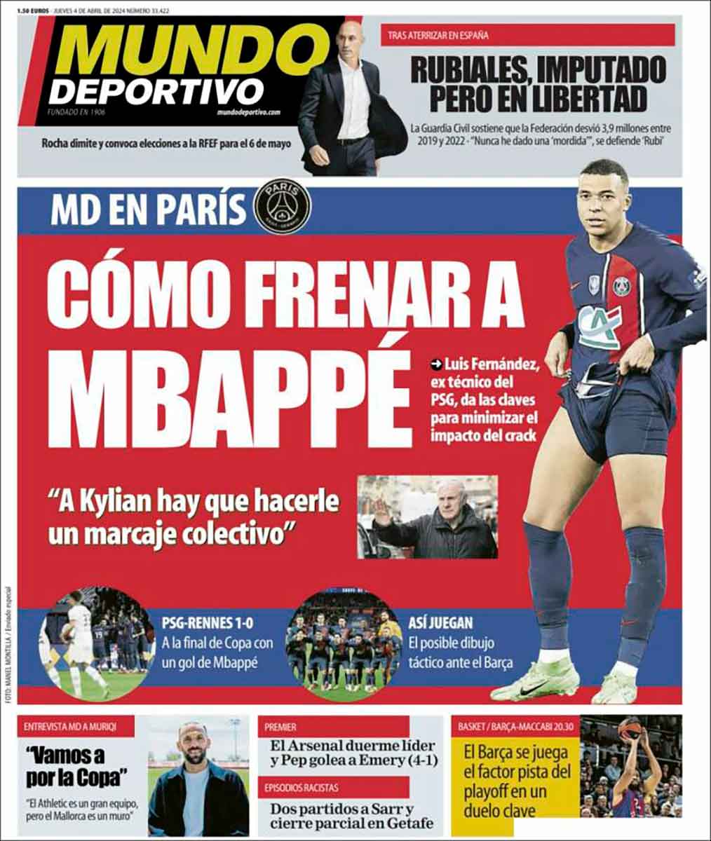 La primera plana de Mundo Deportivo dedica menos espacio a los Piratas del Caribe y más a buscar cómo frenar a Mbappé. Luis Fernández, otrora técnico del Athletic, defiende que a Kylian hay que hacerle un marcaje colectivo. Si un argentino lee esta afirmación, pensará que la táctica es colocar el autobús en la portería.