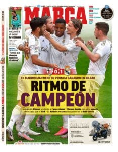 Periódico Marca"el de todas las aficiones", como se gustan ellos de denominar , de todas excepto de la más numerosa que es la del Madrid, el eterno bienquedismo de apostar a rojo y negro,par e impar , pongo en portada al Madrid pero a la vez escribo que dejan de pitar uno a Raúl García. Luego se indignaràn cuando desde Barcelona hablan de la caverna y dirán que es injusto y etc etc. Ay Juancho Gallardo te ascendieron para que reflotaras el periódico y lo único que consigues es ser igual de maricomplejines que tus antecesores (excepto Inda) , tienen un miedo atroz a que se les pueda imputar el más leve artículo ecuánime hacia el Madrid.