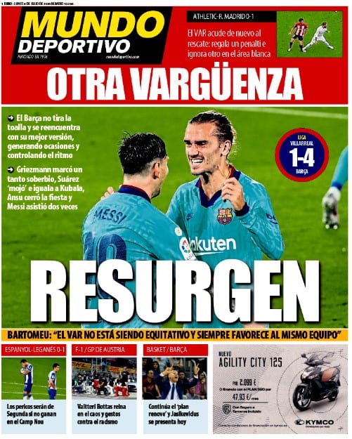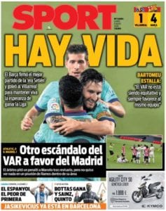 Y echad un vistazo también, si tenéis arrestos, a las portadas de la prensa cataculé. Incapaces de centrarse en la (por una vez) brillante victoria de su equipo, esparcen a más no poder el detritus del supuesto madridismo del VAR. “Otra VARgüenza”, sacude Mundo Deportivo, en un juego de palabras ya usando con anterioridad y que ya fue malo la primera vez, aventándose incluso a añadir que el VAR “regala un penalti e ignora otro en el área blanca”.