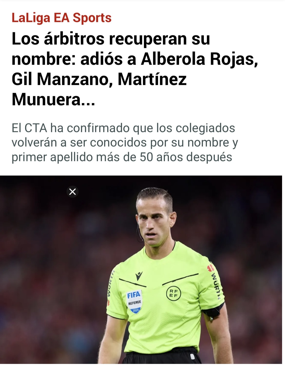Buenos días, amigos. ¡Por fin! Se ha obrado el milagro. Lo que llevamos tanto tiempo reclamando a resultas del escándalo Negreira, es decir, una regeneración total del Comité Técnico de Árbitros, ha tenido lugar al fin.