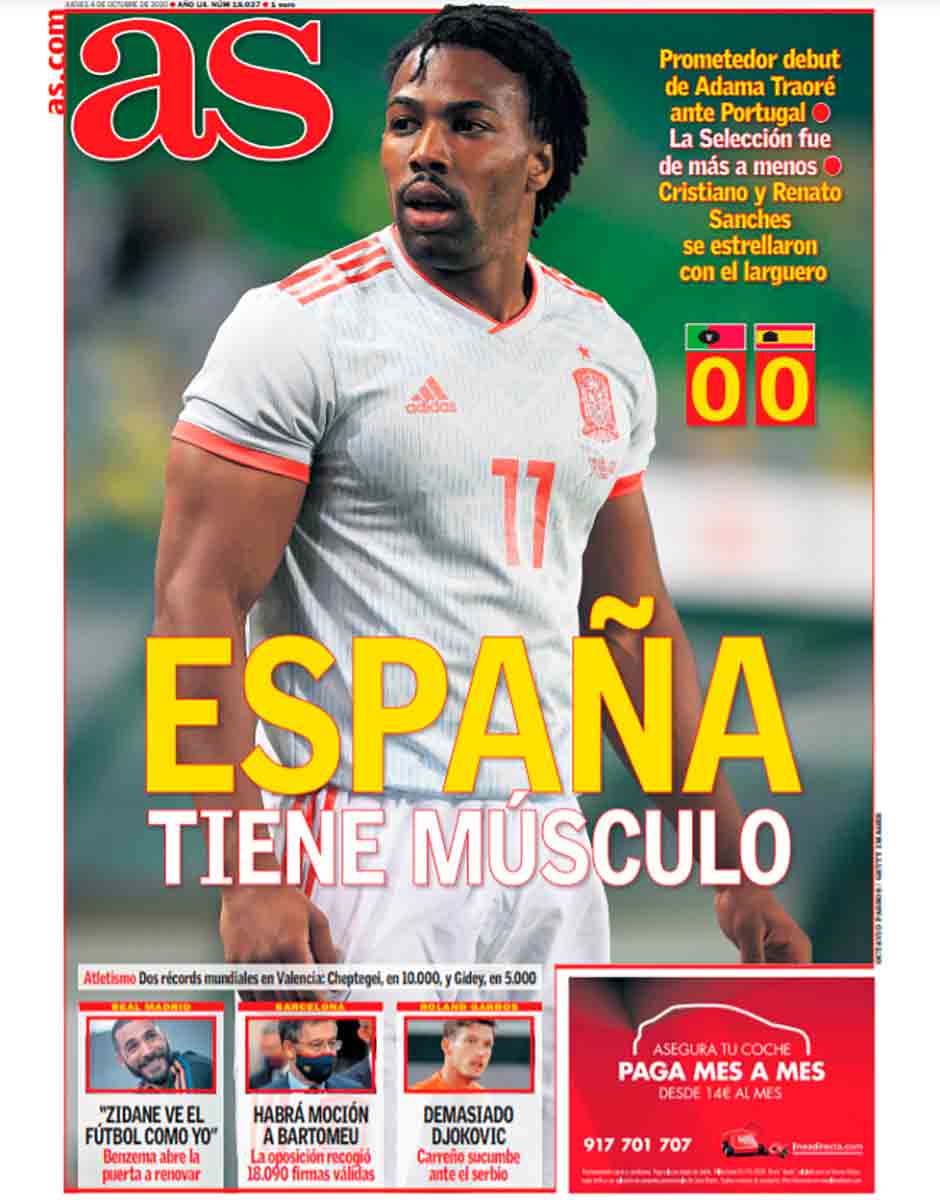 Os vamos a decir por qué. Para que As pueda exhibir la enésima portada de rancio chovinismo hispano, esta vez a cuenta de la musculatura del debutante Adama, que a duras penas se puso por primera vez “la roja”, dejándola a punto de petar.