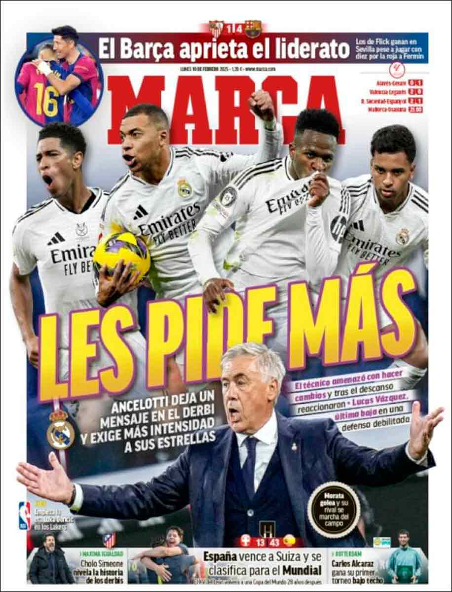 Marca, por su parte, sigue con su labor dirigida a destruir al Madrid. Cuando no es su director quien deyecta su odio contra el club en sus escritos, utilizan las portadas para sembrar la división dentro del madridismo.