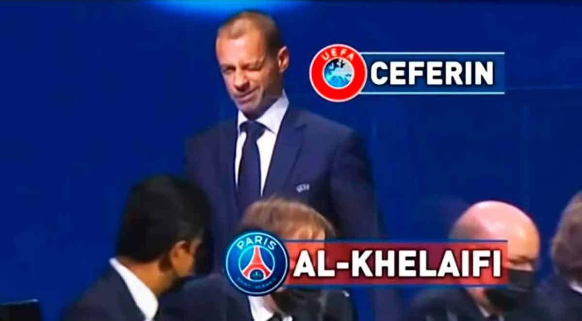Aquí tenéis a los dos tortolitos, Ceferin, presidente de la UEFA, guiñando, en plena conferencia de prensa contra la Superliga, el ojito a Al-Khelaïfi, presidente del PSG y subordinado de Tamim bin Hamad Al Zani, a la sazón emir de Qatar, futuro escenario (en pleno diciembre) del próximo mundial.