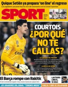 Buenos días, independientemente de que el belga tenga razón o no, y que sus comentarios gusten más o menos, el periódico deportivo- independentista, no es nadie para mandar callar al portero del Madrid, que es el único ( el club) con legitimidad y potestad, para decirle 4 cosas a Courtois,