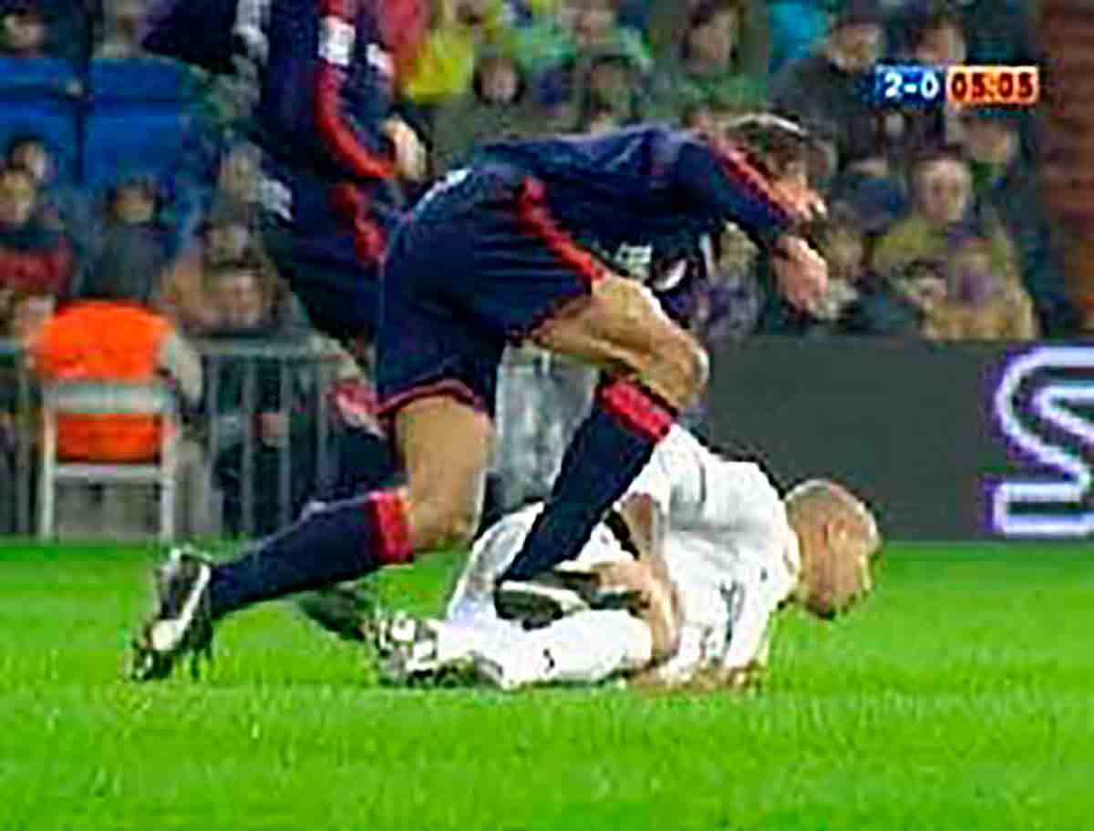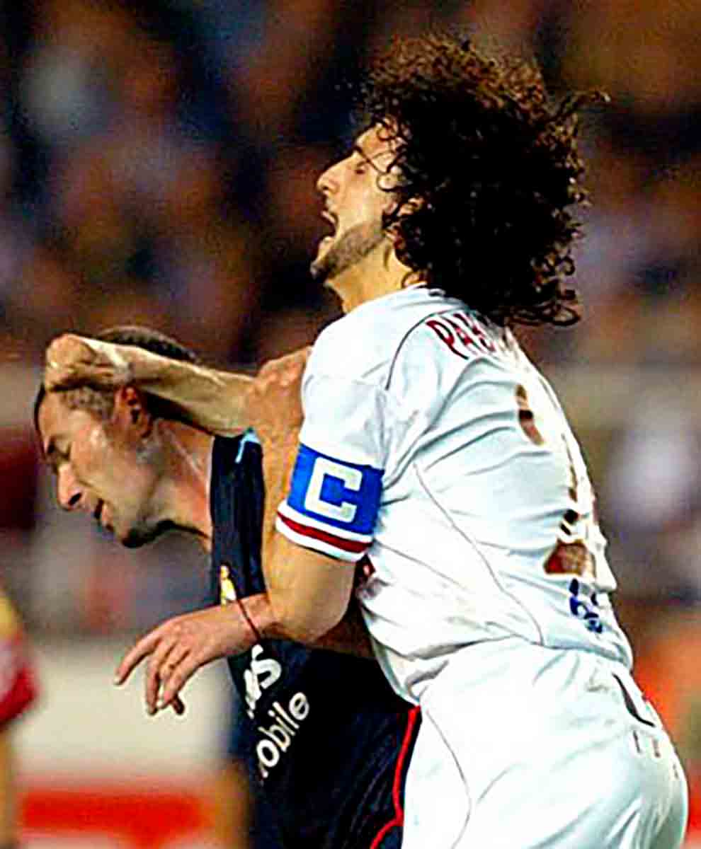 Un año después, en 2004, la persecución de Pablo Alfaro a Zidane, con entradas que quedaban impunes, provocó la respuesta del galo, que vio la roja tras el manotazo que soltó al central sevillista. El árbitro que consintió las “caricias”, pero no la respuesta de Zizou fue el perpetrador habitual de estas decisiones: Iturralde González.