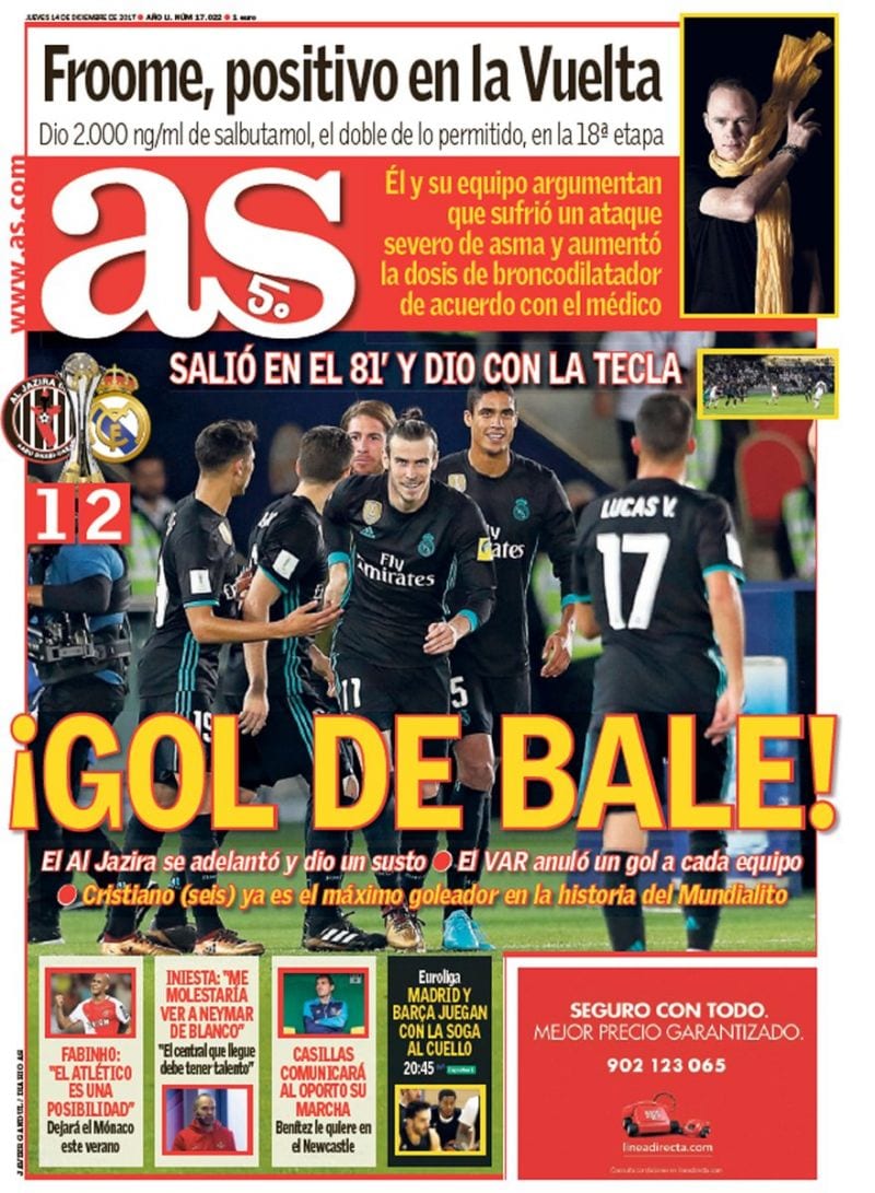 En pequeñito, eso sí, el Sport ha cometido la torpeza de llamar "Mundial de Clubs" a la competición que juega el Real Madrid. A ver si aprenden de Relaño, que siempre llama a las cosas por su nombre...