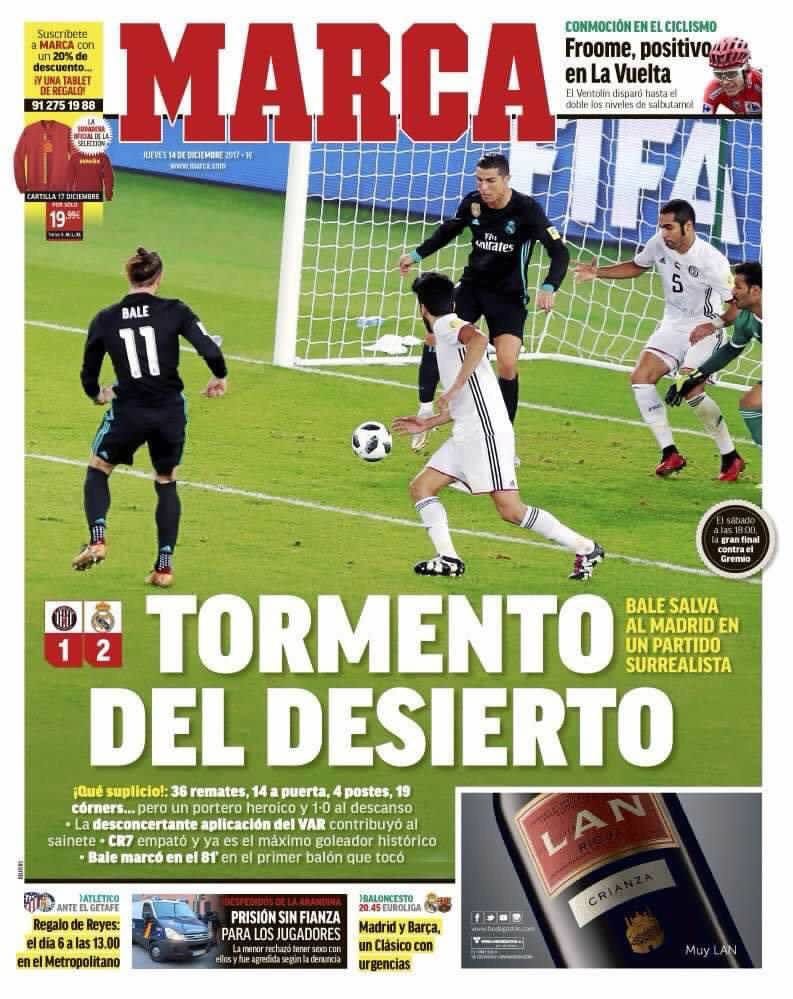 Cuando al inicio del segundo tiempo los árabes volvieron a marcar ya no fue necesario esconderse en el wáter para ver el partido. La algarabía antimadridista celebraba ya con alboroto sin saber que una vez más su gozo acabaría en un pozo.