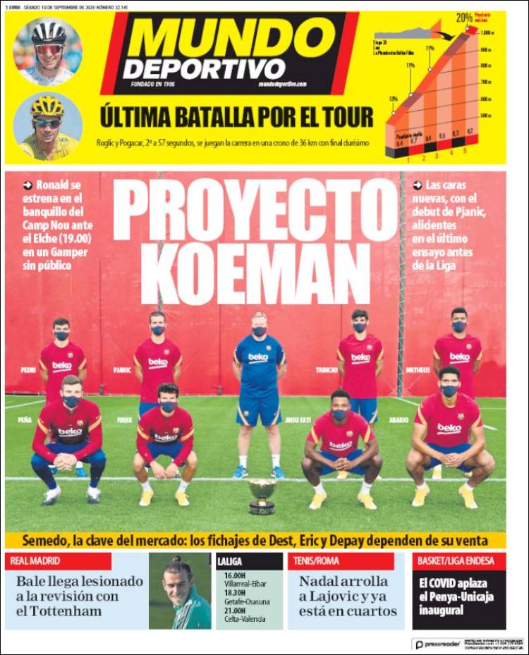 Algo ridículo suena también hablar de un "proyecto Koeman", tal y como hace, creemos que sin ironía, la portada de Mundo Deportivo. A no ser que para que algo sea un proyecto sea suficiente, por ejemplo, un esquema hecho con un gastado bolígrafo Bic en la parte de atrás de un ticket de supermercado. Es verdad que cuenta la leyenda que algunas de las empresas que hoy tienen su sede en Silicon Valley comenzaron sus proyectos en un garaje, pero ya se sabe que, más que un garaje, en Can Barça habitan bien el patio de su casa, que es particular y cuando llueve no se moja como los demás. Allí pueden caer chuzos de burofaxes, rayos y centellas de cuentas poco claras al borde de la quiebra, truenos de presidentes en estado de descomposición, maremotos de entrenadores despedidos a los que no se les puede dar de baja por falta de liquidez, vientos huracanados de delanteros uruguayos que se van pero no, granizadas de jugadores casi regalados para intentar salvar el peso de una masa salarial nacida en Rosario, criada en La Masía y venerada todos los días de nuestra vida...
