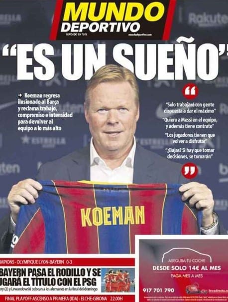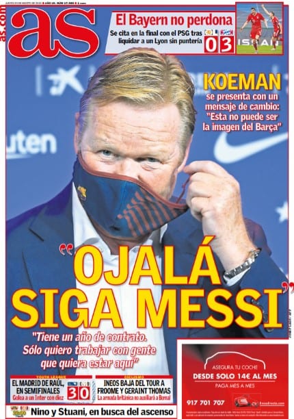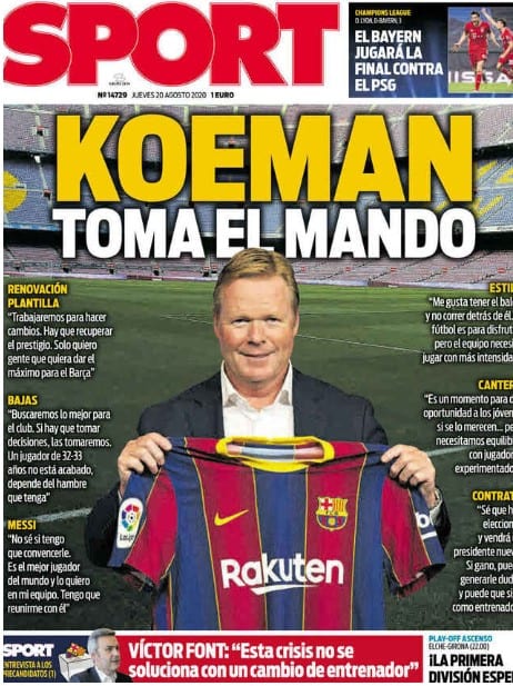 Hoy, por ejemplo, As sale con una portada de lo más neutra, relativa a la presentación de Koeman como nuevo técnico del Barça.
