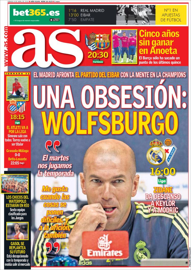 Es esto lo que no entiende (no quiere entender) la portada que hoy nos presenta el diario As. Llama obsesión a la ilusión, al empuje, a las ganas de enmendar un mal resultado, al estímulo extra que el partido de ida supone, a la atención plena que exigen las grandes citas, a la responsabilidad que tiene el Madrid con su afición y con su competición preferida.