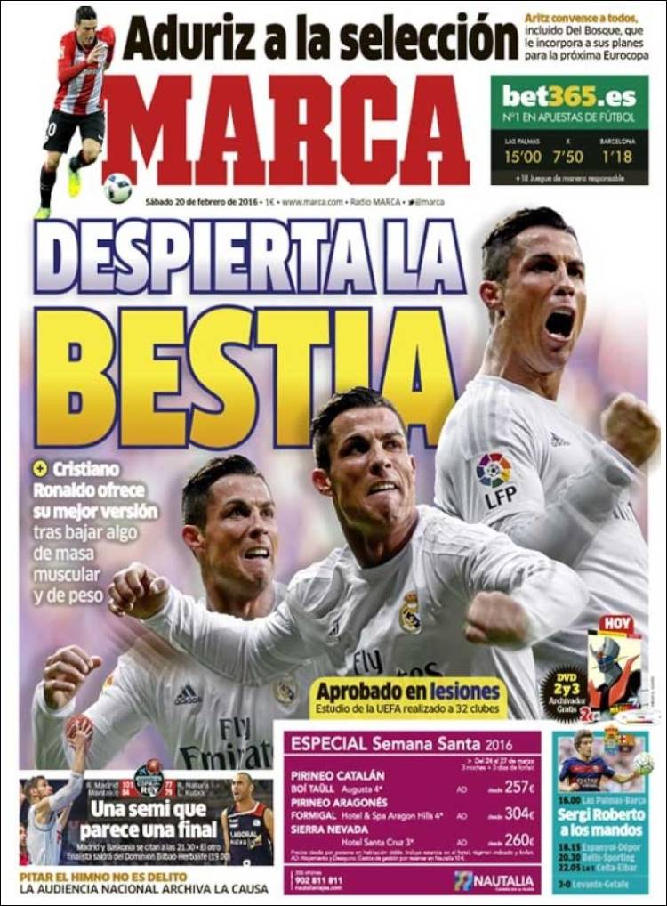 Hoy Marca nos sale con el despertar de la bestia, con la mejor versión de Cristiano justificada por no sabemos qué cosas de tipo físico. Ay, señor, danos paciencia. Reconocemos que la portada tiene gancho en su secuencia fotográfica, que bien podría servir de inspiración para una eventual enésima secuela de la saga de Rocky, pero más allá de esta cosa estético-espartana, ¿en qué quedamos, señores? O estamos a Rolex o estamos a setas. Ambas cosas a la vez se nos antojan difíciles de asumir, contradictorias y hasta excluyentes (al menos en este limitado espacio-tiempo que nos sostiene). Y miren que sabemos que la vida a veces parece justamente una sucesión de contradicciones, pero mejor le irá al que alcanza este saber si se cuida de ser demasiado contundente en sus afirmaciones y da entrada al siempre sano "no lo tengo del todo claro", o al menos al "creo" con el que el profesor Emilio Lledó suele terminar sus sabias explicaciones. De lo contrario, si uno se aferra con calificativos gruesos y sentencias como brochazos a una verdad vendida como incontestable, ¿dónde queda la credibilidad cuando ya mismo, recién sentenciada tal verdad, se contesta uno a sí mismo diciendo lo contrario de lo dicho ayer? Seguro que todos ustedes saben la respuesta a esta pregunta.