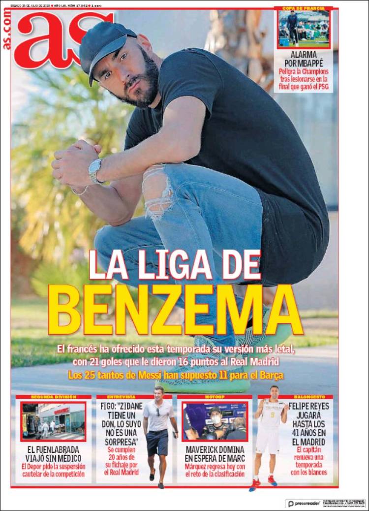 En este compás de espera entre el fin de la trigésimocuarta Liga del Madrid y la que esperemos sea la décimocuarta Copa de Europa, nuestras queridas portadas deportivas se llenan de verano, que es lo mismo que decir que se vacían de contenido reseñable, si es que les concedemos generosamente que en primavera, otoño o invierno tengan algún contenido reseñable.