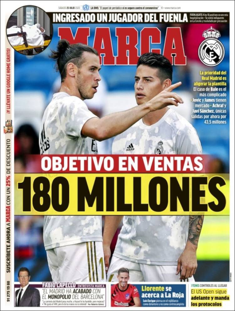 Algunos de los nombres implicados en este ir y venir se vienen repitiendo casi desde la fundación del Madrid -léase James y Bale-, en lo que viene siendo una labor de investigación, en este caso de Marca, que ríanse ustedes del Watergate de Woodward y Bernstein, o de Lidia Lozano y Carmele Marchante. Otro de los nombres de hoy suponemos que tiene en vilo al barcelonismo, aunque, de ser nosotros los inquietos, nos quedaríamos más tranquilos al leer en Mundo Deportivo que Ter Stegen "está dispuesto a adecuar su contrato de forma progresiva", signifique eso lo que signifique.