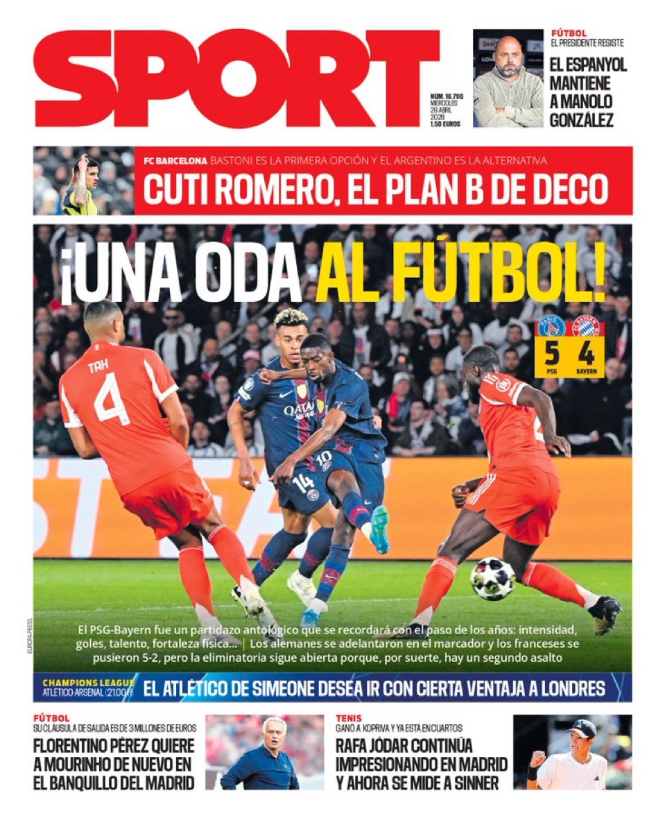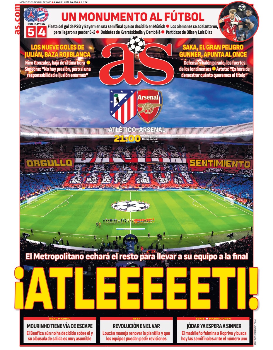 En fin, amigos. Hoy se juega la otra semifinal de la Champions, es decir, la que enfrenta al Atleti con el Arsenal. La sensación clara es que, sea cual sea el equipo que pase a la final, lo tendrá crudo ante el otro finalista, PSG o Bayern, se verá la próxima semana. Pero el fútbol es una cosa muy loca, de manera que quién sabe.